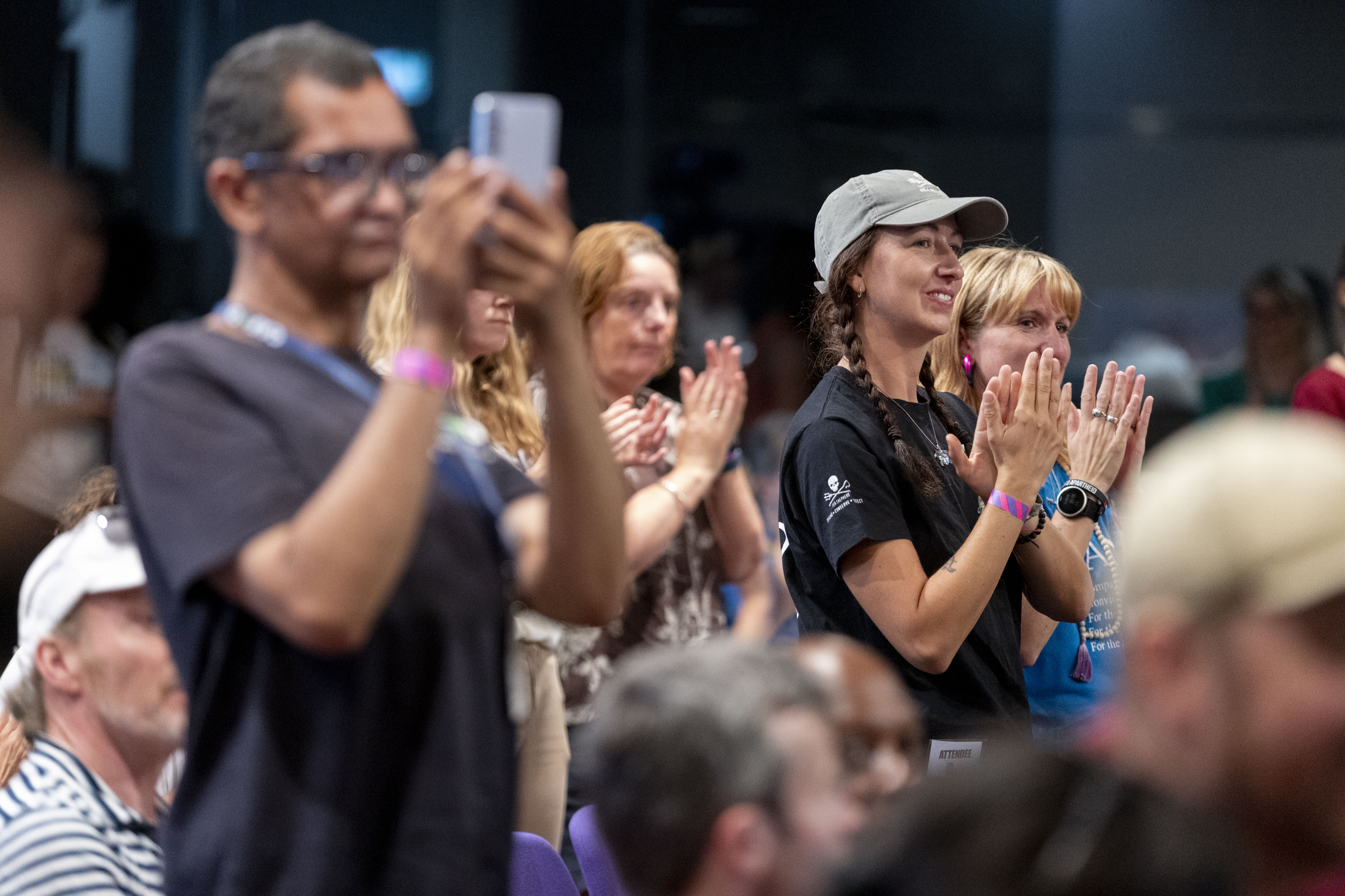 Participants listen to speeches in the auditorium at QEII centre in Westminster; Photo credit: Vicki Couchman/PA